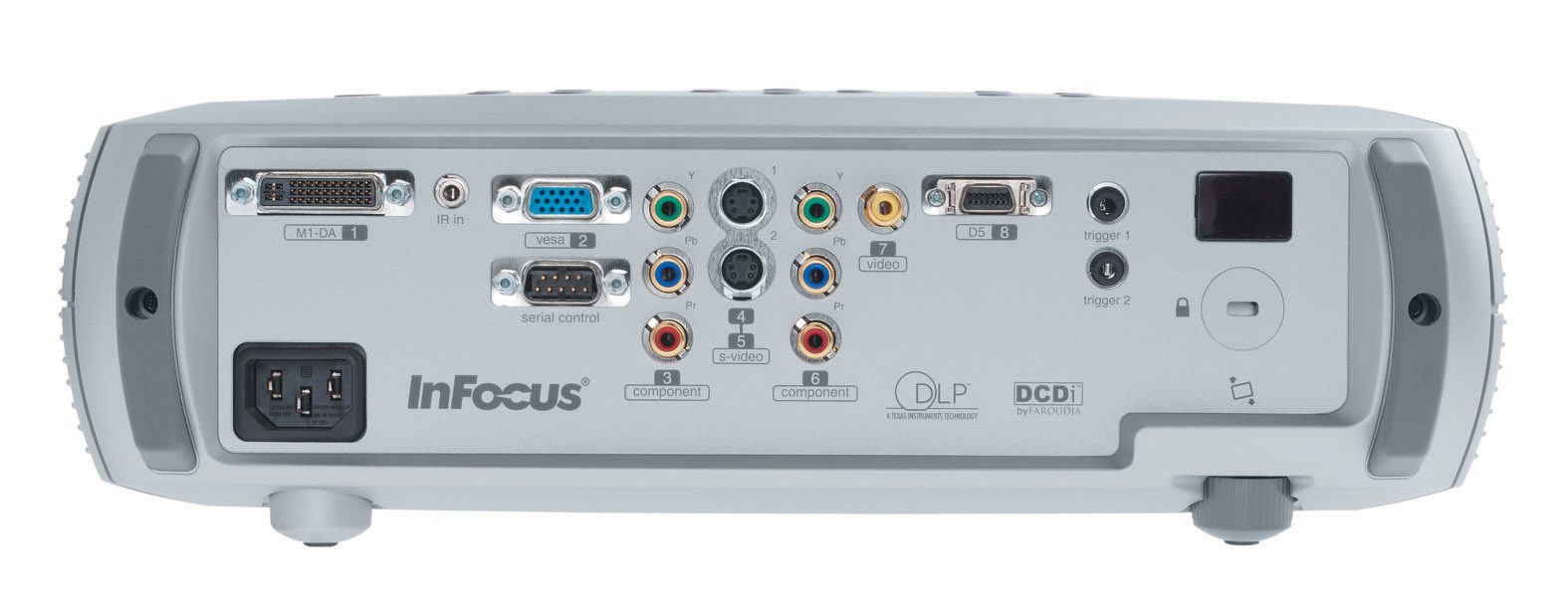 The HD2+ Mustang DLP™ chip, from Texas Instruments, delivers exceptional video clarity. While the enhanced DCDi+ FLI 2310 from Faroudja delivers progressive scan with enhanced noise reducers, colour enhancers and a unique 2:2 pull down—never seen before in home theatre projectors. This DCDi+ is exclusive to InFocus ScreenPlay and creates the smoothest view, with virtually non-existent scan lines and no discernable flicker. With the growing number of source options: DVD, DVB / Satellite, DVHS, PC Games and Media Players, connectivity is a key feature. The SP7205 provides eight individual video inputs: three HDTV Component, one VGA, two S-Video, one Composite Video and one HD15 input, together with a M1-DA interface fully compatible with all Digital Video formats such as DVI and HDMI. With a view towards the future the SP7205 is naturally compatible with the upcoming High Definition broadcasts from Sky and the BBC.